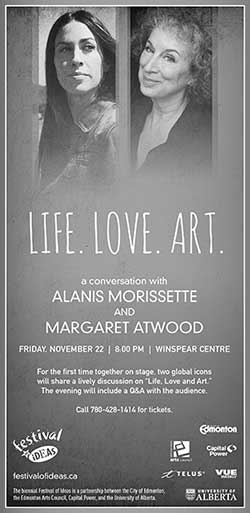 This event had me confused for months. I finally found out that it’s a sort of teaser for next year’s Festival of Ideas at the U of A (which will be headlined by Twitter-infamous Joyce Carol Oates.) For just $50, you could listen to Margaret Atwood and Alanis in conversation about “Life. Love. Art” as per the promotional material. That’s pretty vague, and I had no idea what to expect.