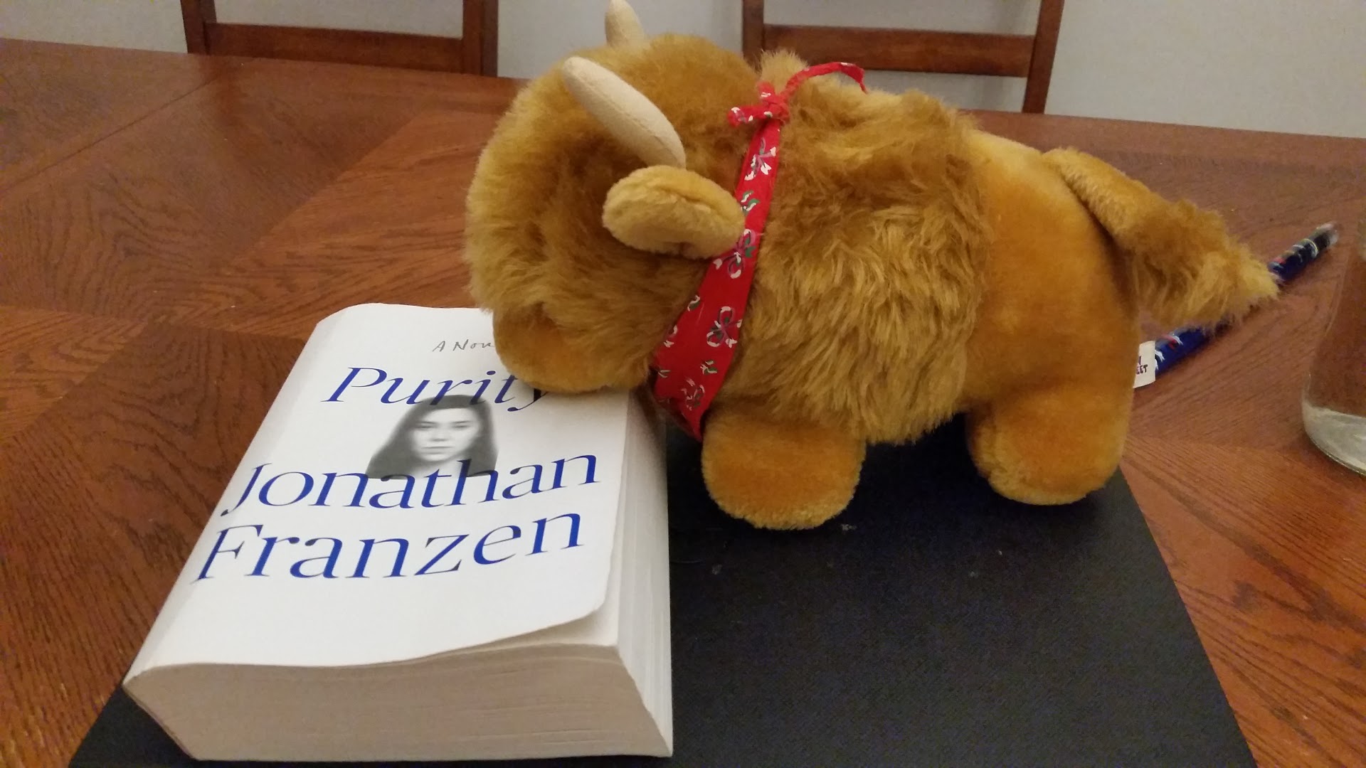 There’s some quasi-BSDM in Purity (the BDSM in Fifty Shades is quasi at best too,) particularly between Pip and Andreas, who most clearly correspond to Ana and Christian, what with the power imbalances and the mind fucks and the innocent young girl/bad boy with a secret thing,  but also between Pip’s mom Anabel and Tom, who share a memorable, not-really-consensual sex scene (see Zink’s review for a spoiler, whenever it’s back up) and have a freaky sex ritual that involves a stuffed bull named Leonard. The bull thing has nothing to do with BDSM but I had to mention it somehow.