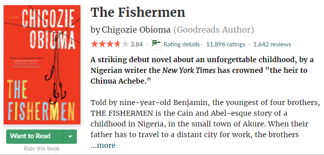Goodreads is generally trash, but it is good for one thing: looking up reviews when you’re stuck on writing your own. Or, more to the point, you need to shore up your opinion about a book that seems to go against the grain. My first impression of The Fishermen was that it’s a good book that does several things quite well, but doesn’t really come together and feels a bit unfinished. I was uncertain: did I just not get it? Was it the cultural context?