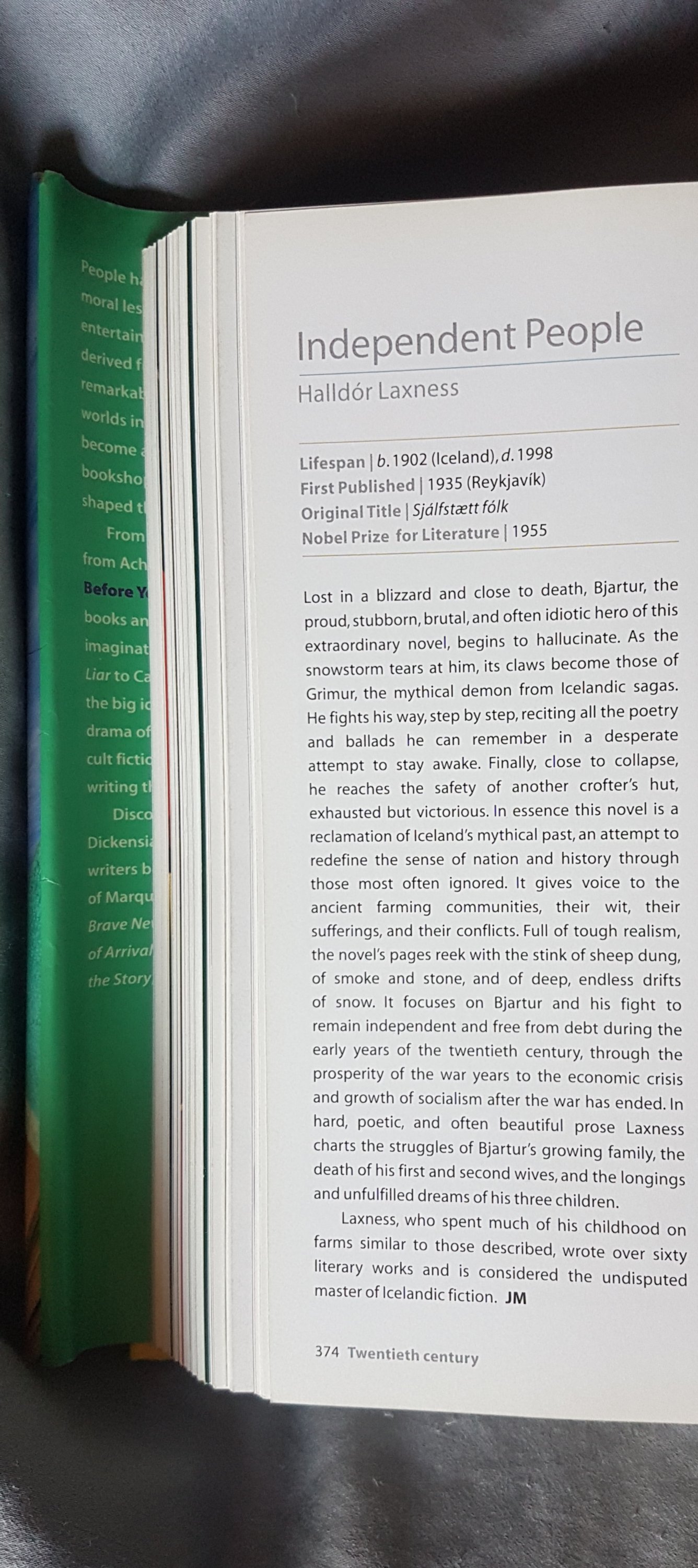 Independent People is #625 on the 1,001 Books You Must Read Before You Die list. See the whole list and my progress here. This summer, I’m reading from the list for my 20 Books of Summer challenge, and instead of straight reviews, I’m going to compare the 1,001 Books write-ups with my own impressions.