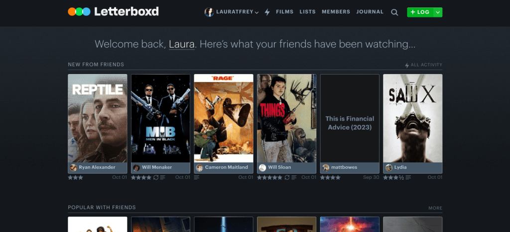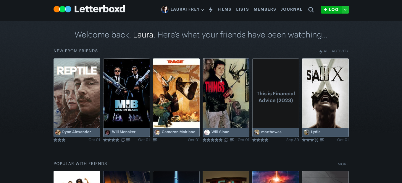 • A social presence that isn’t extremely cringe (compare and contrast Letterboxd’s popular #LastFourFriday posts, and Goodreads’ sad attempt at a “Friday Reads” post)