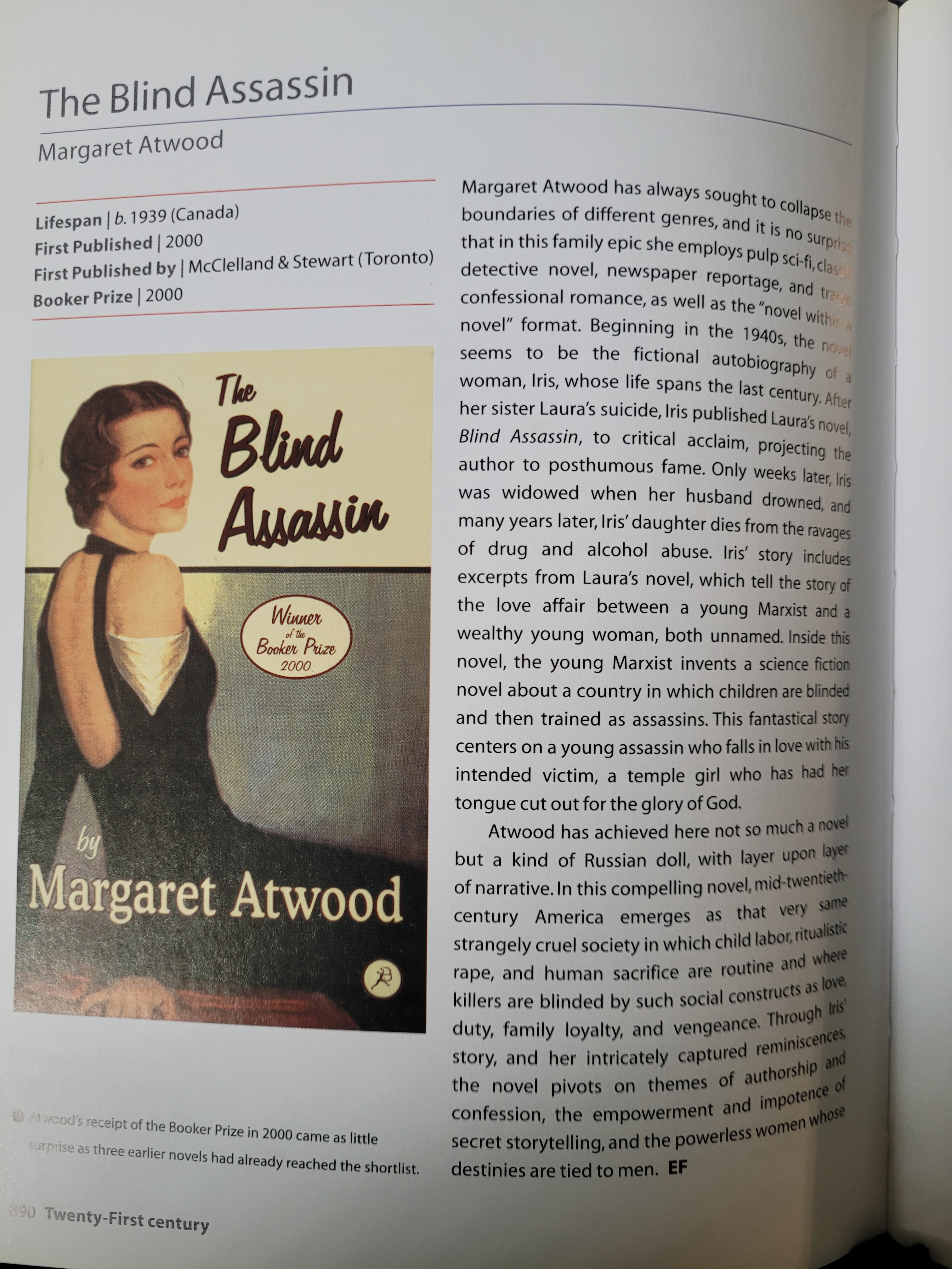 It goes without saying that Goodread reviews are suspect. Where can a reader go for a trustworthy, competent review these days? Not the New York Times, apparently! After reading the fairly standard 1001 Books write up, I thought I’d look for something a little juicier, and I was shocked to find a blatant misreading of The Blind Assassin committed to print on the book’s publication date.